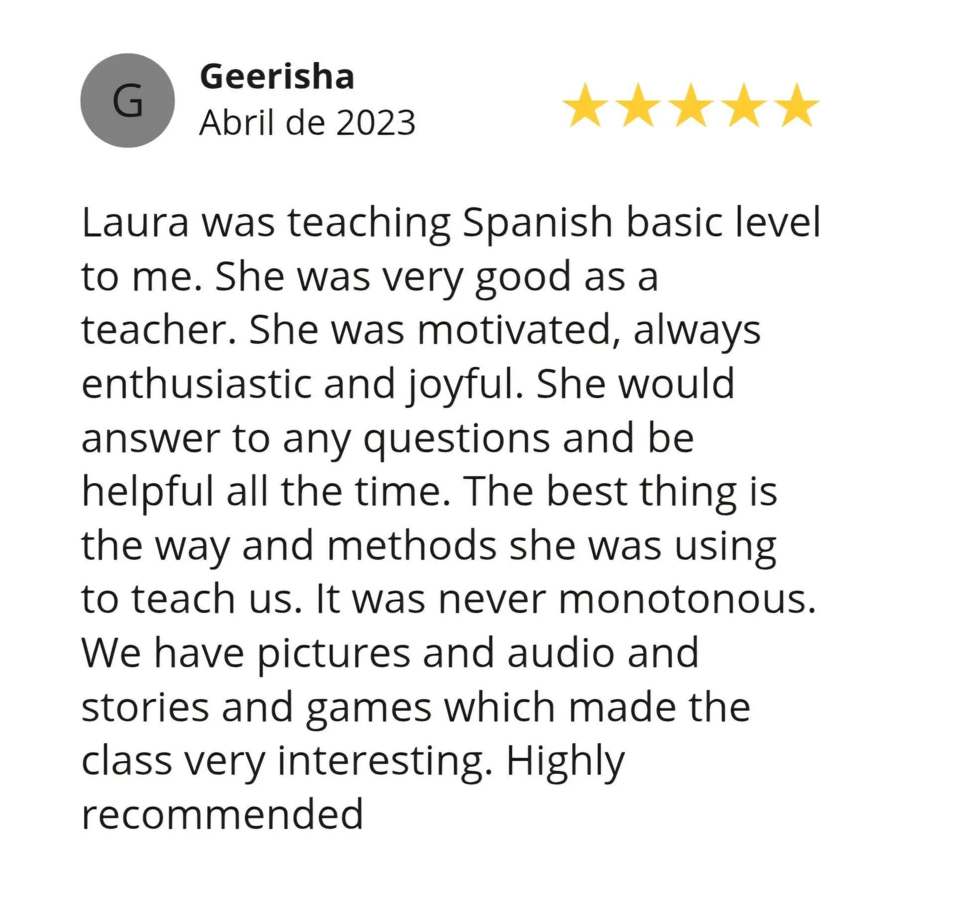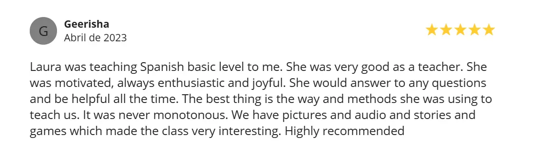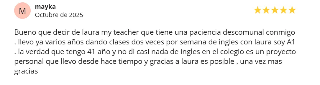 I am fluent in English, with Spanish as my native language and French as an additional language. Having navigated the challenges of learning a new language, I am better equipped to understand and address the needs of my students, helping them succeed in English.